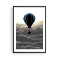 Pôster com moldura preta - Um balão preto flutuando acima das nuvens - 50x70cm - Andarilho acima das nuvens - Decoração de parede moderna para a sala de estar e quarto ARTTOR