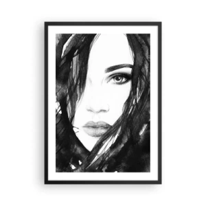 Pôster com moldura preta - Aquarela em preto e branco de um rosto de mulher - 50x70cm - Retrato de uma dama a preto e branco - Decoração de parede moderna para a sala de estar e quarto ARTTOR