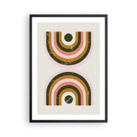 Pôster com moldura preta - Composição geométrica em estilo retrô - 50x70cm - Abstração gêmea - Decoração de parede moderna para a sala de estar e quarto ARTTOR