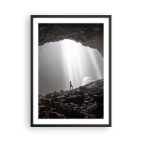 Pôster com moldura preta - Uma figura em uma caverna iluminada por raios de luz - 50x70cm - Gruta luminosa - Decoração de parede moderna para a sala de estar e quarto ARTTOR