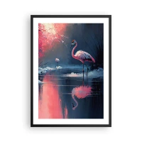 Pôster com moldura preta - Flamingos em um lago calmo - 50x70cm - O retiro de um pássaro - Decoração de parede moderna para a sala de estar e quarto ARTTOR