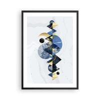 Pôster com moldura preta - Uma composição abstrata em tons de azul com delicados detalhes dourados. - 50x70cm - Estudo do encontro do cinza e turquesa - Decoração de parede moderna para a sala de estar e quarto ARTTOR