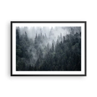 Pôster com moldura preta - O amanhecer da floresta - 70x50 cm