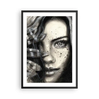 Pôster com moldura preta - Retrato de uma mulher em estilo monocromático - 50x70cm - Beleza selvagem - Decoração de parede moderna para a sala de estar e quarto ARTTOR