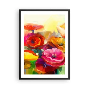 Pôster com moldura preta - Papoulas coloridas em um fundo abstrato - 50x70cm - Não só vermelho - Decoração de parede moderna para a sala de estar e quarto ARTTOR