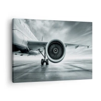 Quadro em tela - O motor a jato de um avião na pista - 70x50cm - Há poder! - Decoração de parede moderna para a sala de estar e quarto ARTTOR