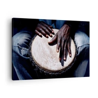 Quadro em tela - Mãos tocando um tambor djembê em uma composição dinâmica - 70x50cm - Viva no seu próprio ritmo - Decoração de parede moderna para a sala de estar e quarto ARTTOR