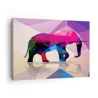 Quadro em tela - Silhueta geométrica de um elefante em cores vivas - 70x50cm - Dinossauro de cristal - Decoração de parede moderna para a sala de estar e quarto ARTTOR