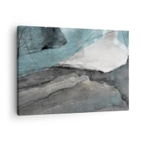 Quadro em tela - Composição abstrata em tons de cinza e azul - 70x50cm - Resumo: rochas e gelo - Decoração de parede moderna para a sala de estar e quarto ARTTOR