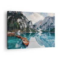 Quadro em tela - Um lago com barcos cercado por montanhas - 70x50cm - Vamos mostrar-lhe a beleza - Decoração de parede moderna para a sala de estar e quarto ARTTOR
