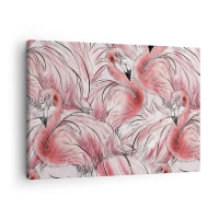 Quadro em tela - Desenhos delicados de flamingos cor de rosa - 70x50cm - Bird corps de ballet - Decoração de parede moderna para a sala de estar e quarto ARTTOR
