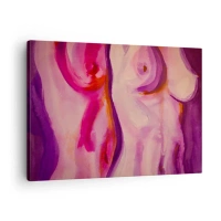 Quadro em tela - Uma interpretação abstrata da silhueta feminina em tons de rosa e roxo. - 70x50cm - Ode à Feminilidade - Decoração de parede moderna para a sala de estar e quarto ARTTOR
