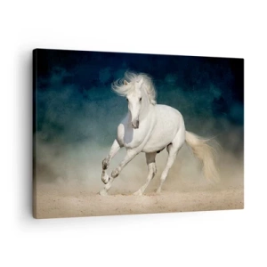 Quadro em tela - Um cavalo branco galopando contra um céu turvo - 70x50cm - Liberdade em seu estado puro - Decoração de parede moderna para a sala de estar e quarto ARTTOR