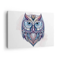 Quadro em tela - Uma coruja com penas místicas em forma de aquarela artística - 70x50cm - Ela veio do mundo da magia - Decoração de parede moderna para a sala de estar e quarto ARTTOR