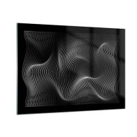 Quadro em vidro - Linhas brancas hipnotizantes ondulando contra um fundo preto - 70x50cm - Dança de luz no espaço - Decoração de parede moderna para a sala de estar e quarto ARTTOR