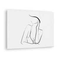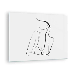 Quadro em vidro - Uma linha simples mostrando o contorno do corpo em tons de preto e branco - 70x50cm - Na onda dos sonhos - Decoração de parede moderna para a sala de estar e quarto ARTTOR