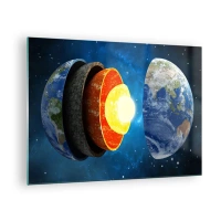 Quadro em vidro - Um corte transversal da Terra mostrando suas camadas contra o pano de fundo do espaço. - 70x50cm - Viagem ao centro da Terra - Decoração de parede moderna para a sala de estar e quarto ARTTOR