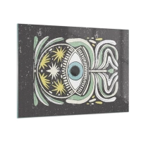 Quadro em vidro - Olho gráfico com ornamentação tribal em fundo escuro - 70x50cm - Rituais tribais - Decoração de parede moderna para a sala de estar e quarto ARTTOR