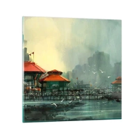 Quadro em vidro - Um dia ensolarado no porto - 30x30 cm