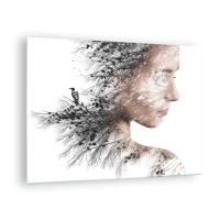 Quadro em vidro - Retrato de uma mulher com galhos ao fundo - 70x50cm - Espírito da floresta - Decoração de parede moderna para a sala de estar e quarto ARTTOR