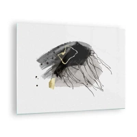 Quadro em vidro - Padrão abstrato com ovais e linhas pretas e brancas - 70x50cm - Duração e vibração - Decoração de parede moderna para a sala de estar e quarto ARTTOR
