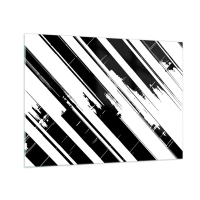 Quadro em vidro - Listras pretas e brancas dinâmicas com efeito desgastado - 70x50cm - Uma composição intensa e dinâmica - Decoração de parede moderna para a sala de estar e quarto ARTTOR