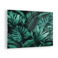 Quadro em vidro - Folhas verdes exuberantes em uma composição tropical - 70x50cm - A profundidade da vegetação tropical - Decoração de parede moderna para a sala de estar e quarto ARTTOR