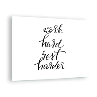 Quadro em vidro - Inscrição tipográfica 'trabalhe duro, descanse mais duro' em uma fonte elegante - 70x50cm - Equilíbrio da vida - Decoração de parede moderna para a sala de estar e quarto ARTTOR