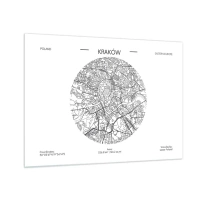Quadro em vidro - Um mapa de Cracóvia em estilo de ilustração em preto e branco - 70x50cm - Anatomia de Cracóvia - Decoração de parede moderna para a sala de estar e quarto ARTTOR