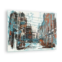 Quadro em vidro - Uma rua pitoresca da cidade em um estilo artístico e desgastado - 70x50cm - Um desgastado percurso urbano - Decoração de parede moderna para a sala de estar e quarto ARTTOR