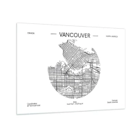 Quadro em vidro - Mapa de ruas em preto e branco de Vancouver - 70x50cm - Anatomia de Vacouver - Decoração de parede moderna para a sala de estar e quarto ARTTOR