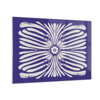 Quadro em vidro - Padrão étnico simétrico em fundo roxo - 70x50cm - Inspirações étnicas - Decoração de parede moderna para a sala de estar e quarto ARTTOR
