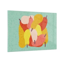 Quadro em vidro - Peras coloridas em estilo gráfico sobre fundo turquesa - 70x50cm - Experimente o sol de verão - Decoração de parede moderna para a sala de estar e quarto ARTTOR
