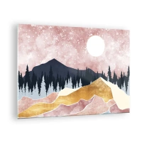 Quadro em vidro - Montanhas e florestas ao luar contra um céu rosa - 70x50cm - Ronda Noturna - Decoração de parede moderna para a sala de estar e quarto ARTTOR