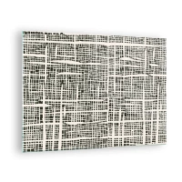 Quadro em vidro - Uma abstração em preto e branco que lembra uma grade de pontos. - 70x50cm - Uma composição tecida - Decoração de parede moderna para a sala de estar e quarto ARTTOR