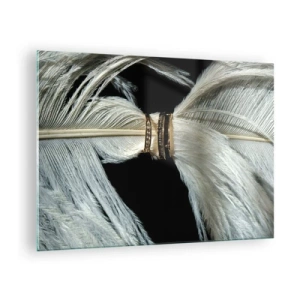 Quadro em vidro - Close-up de alianças de casamento em penas brancas contra um fundo preto - 70x50cm - ...todos os dias da nossa vida... - Decoração de parede moderna para a sala de estar e quarto ARTTOR