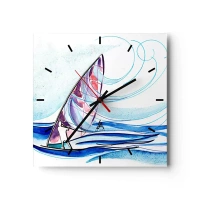 Relógio de parede - Relógio em vidro - Com o vento no ritmo das ondas - 30x30 cm