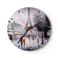 Relógio de parede - Relógio em vidro - Uma rua em Paris com a Torre Eiffel ao fundo - 30x30cm - Passeio em Paris - Decoração de parede moderna para a sala de estar, cozinha e quarto ARTTOR
