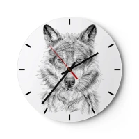 Relógio de parede - Relógio em vidro - Esboço em preto e branco de uma cabeça de lobo em um fundo branco - 30x30cm - Um líder nato - Decoração de parede moderna para a sala de estar, cozinha e quarto ARTTOR