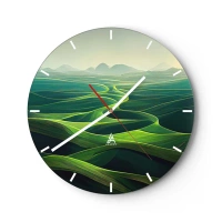 Relógio de parede - Relógio em vidro - Vales e colinas verdes em uma abordagem artística da paisagem - 30x30cm - Nos vales verdes - Decoração de parede moderna para a sala de estar, cozinha e quarto ARTTOR