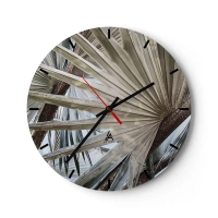 Relógio de parede - Relógio em vidro - Close-up de folhas de palmeira-leque - 30x30cm - Leques nos trópicos - Decoração de parede moderna para a sala de estar, cozinha e quarto ARTTOR