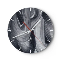 Relógio de parede - Relógio em vidro - Composição abstrata com ondas e um círculo - 30x30cm - Composição da metade - Decoração de parede moderna para a sala de estar, cozinha e quarto ARTTOR