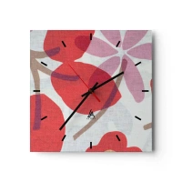 Relógio de parede - Relógio em vidro - Arranjo de flores em rosa - 30x30 cm
