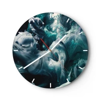 Relógio de parede - Relógio em vidro - Uma composição abstrata de fumaça e tinta em tons de verde e cinza. - 30x30cm - Movimento de cores - Decoração de parede moderna para a sala de estar, cozinha e quarto ARTTOR