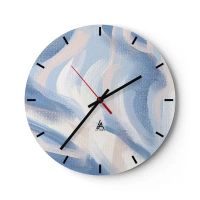 Relógio de parede - Relógio em vidro - Ondas azuis pictóricas e listras pastéis em um fundo texturizado - 30x30cm - Ondas azuis - Decoração de parede moderna para a sala de estar, cozinha e quarto ARTTOR