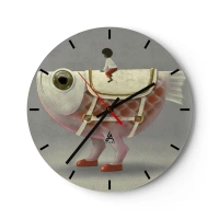 Relógio de parede - Relógio em vidro - Uma figura em um peixe grande com uma sela e botas em um fundo cinza - 30x30cm - O cavaleiro Peixoso - Decoração de parede moderna para a sala de estar, cozinha e quarto ARTTOR