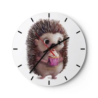 Relógio de parede - Relógio em vidro - Um ouriço fofo segurando um bolinho colorido - 30x30cm - A celebração é diária - Decoração de parede moderna para a sala de estar, cozinha e quarto ARTTOR