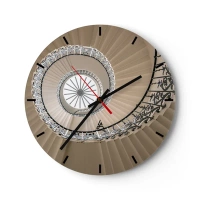 Relógio de parede - Relógio em vidro - Escada em espiral em sépia com vista para cima - 30x30cm - Dentro da casca - Decoração de parede moderna para a sala de estar, cozinha e quarto ARTTOR