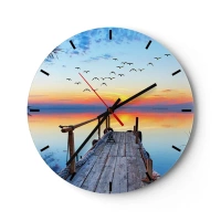 Relógio de parede - Relógio em vidro - Um píer no lago sob os raios do sol poente - 30x30cm - É hora de voltar... - Decoração de parede moderna para a sala de estar, cozinha e quarto ARTTOR