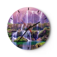 Relógio de parede - Relógio em vidro - Uma cachoeira cercada por vegetação com reflexos de luz em um tom rosa - 30x30cm - Escadas para o céu - Decoração de parede moderna para a sala de estar, cozinha e quarto ARTTOR